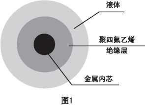 電容法液位測(cè)量原理為探極線與導(dǎo)電液體構(gòu)成一電容器, 其中探極線的金屬內(nèi)芯為電容的一極,導(dǎo)電液體為電容的另一極,中間為高穩(wěn)定性的聚四氟乙烯,即探極線的絕緣外層作為 兩極之間的介質(zhì),隨著液位的變化,液體包圍探極線的面積隨 之改變,使構(gòu)成電容器兩極的相對(duì)面積改變,導(dǎo)致電容的變 化, 根據(jù)同心筒狀電容的公式可寫(xiě)出液位高度與電容的關(guān)系:
