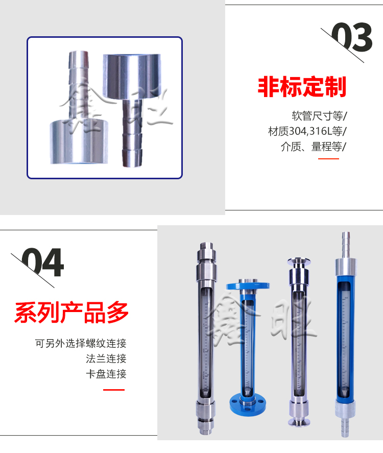 GL/RL/FL10、20、30型玻璃轉(zhuǎn)子流量計(jì)的連接有管螺紋(GL10、20、30型)、軟管(RL10、20、30型);法蘭(FL10、20、30型)三種方式。其耐壓和耐溫均高于原有相同通徑的LZB/LZJ系列玻璃轉(zhuǎn)子流量 計(jì)產(chǎn)品;分普通型(測(cè)量一般無(wú)腐蝕流體)和耐腐型(測(cè) 量的腐蝕性流體)兩種。產(chǎn)品體積小、結(jié)構(gòu)輕巧,外形 美觀,維修方便、安全可靠,安裝簡(jiǎn)單。FL10、20、30型 法蘭可轉(zhuǎn)動(dòng),與現(xiàn)場(chǎng)管道法蘭孔吻合。