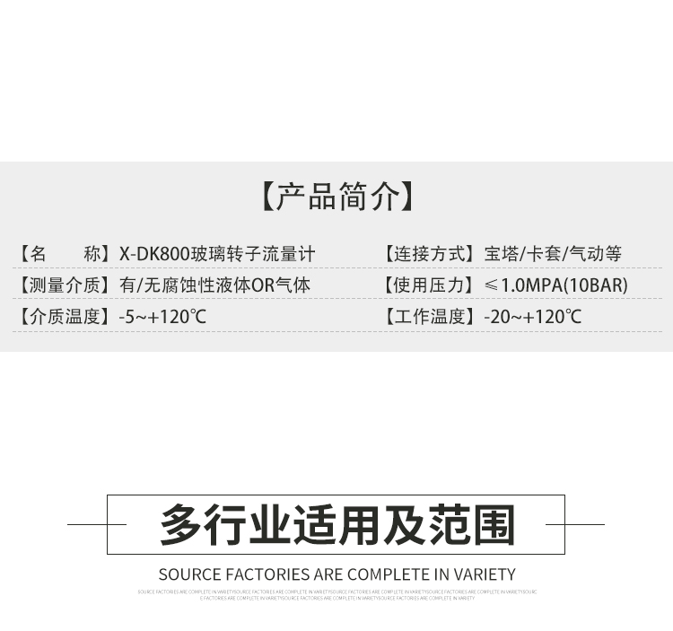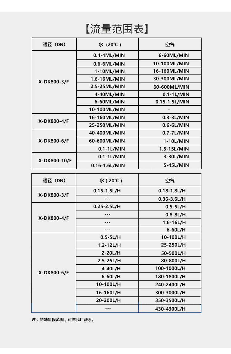 8.       一般流體的測量選用DK800-()型,有腐蝕性流體的測量選用DK800-()F型玻璃轉(zhuǎn)子流量計。