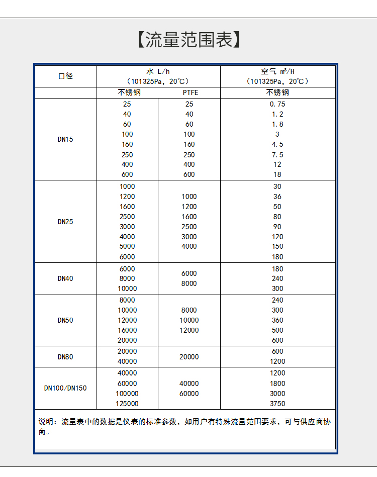 參見流量表,特殊流量可訂制